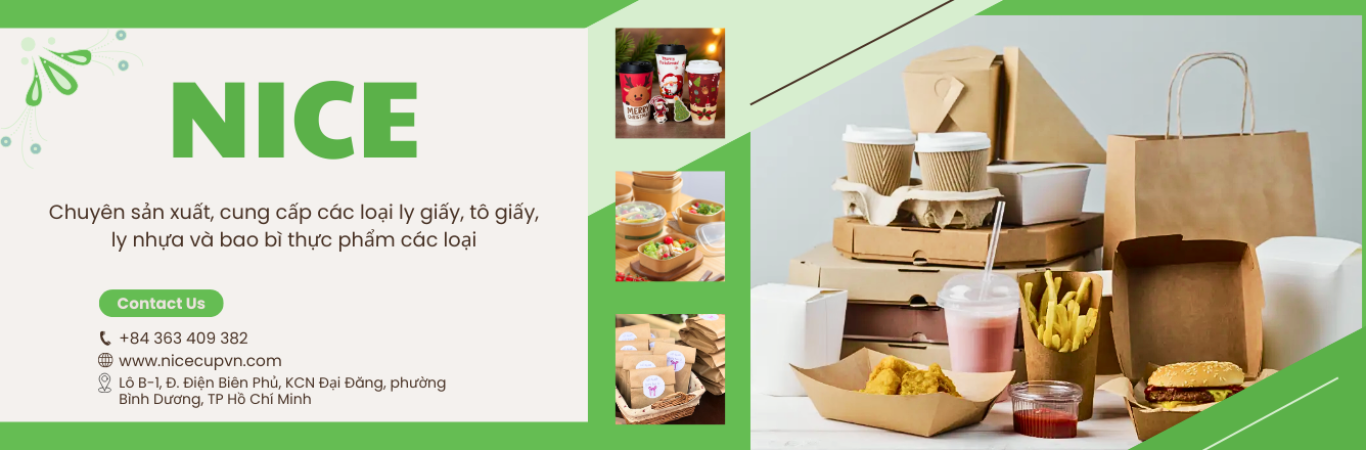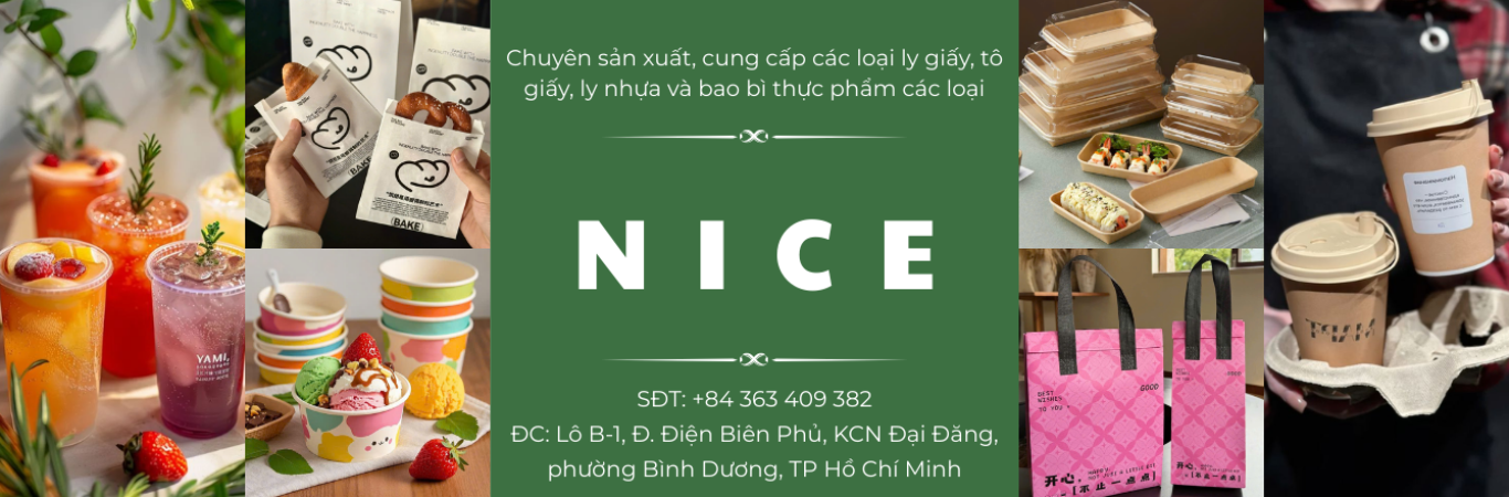 Nice cung cấp đa dạng bao bì, sản phẩm, đồ dùng 1 lần từ giấy và nhựa như ly giấy, ly nhựa, tô giấy, tô nhựa, ống hút, hộp giấy, hộp , dĩa giấy, dĩa nhựa,... đáp ứng mọi nhu của khách hàng, từ các doanh nghiệp, nhà hàng, khách sạn, cho đến các hộ gia đình.