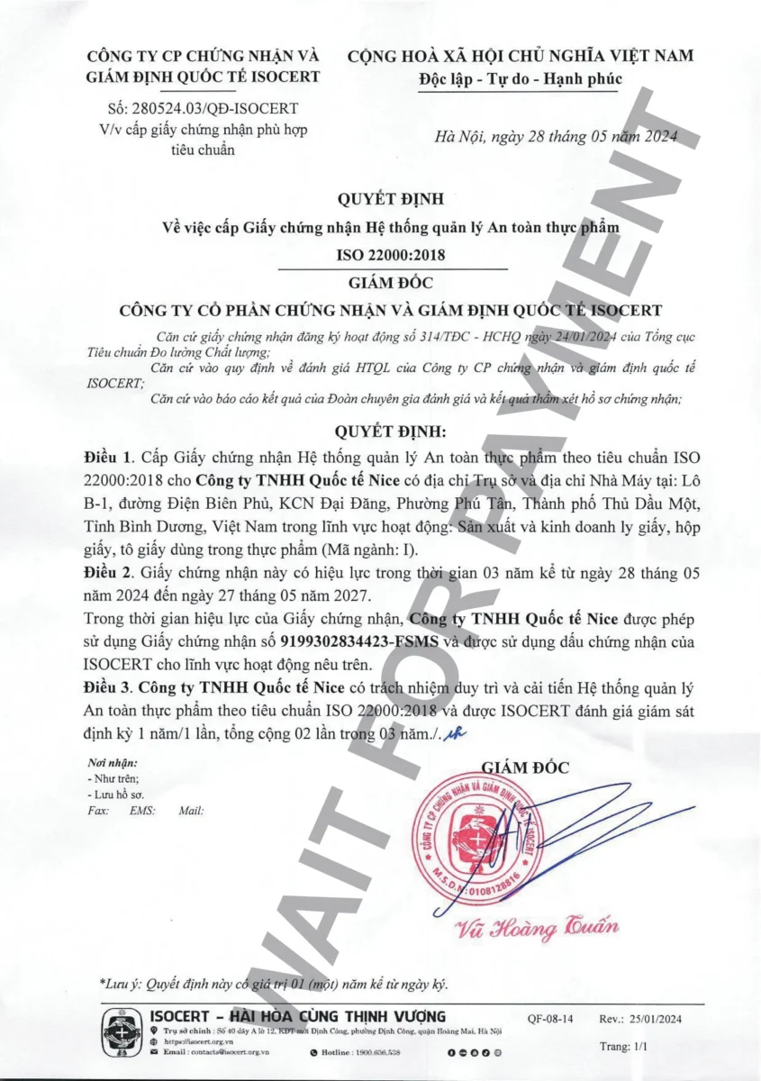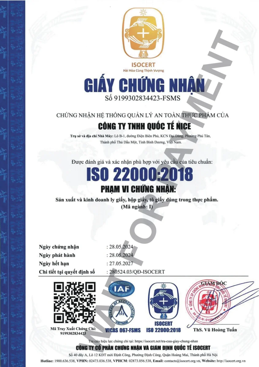 Công Ty TNHH Quốc Tế Nice tự hào là doanh nghiệp số 1 về tô giấy tại Việt Nam, luôn tiên phong trong việc phát triển các sản phẩm thân thiện với môi trường, góp phần nâng cao chất lượng cuộc sống và giá trị thương hiệu cho khách hàng. Chúng tôi cam kết tiếp tục đổi mới, sáng tạo và nâng cao chất lượng sản phẩm để duy trì vị thế hàng đầu trong ngành bao bì giấy.