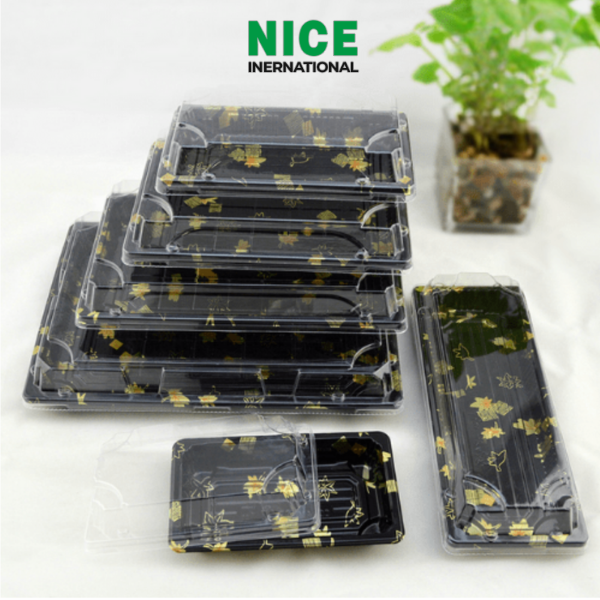 Dĩa nhựa có nắp NICE thiết kế phong cách Nhật Bản, họa tiết lá phong tinh tế. Chất liệu PP/PET an toàn, chịu nhiệt, tiện lợi cho nhà hàng, tiệc sự kiện và dịch vụ giao hàng. Giữ món ăn tươi ngon, nâng tầm trải nghiệm khách hàng.