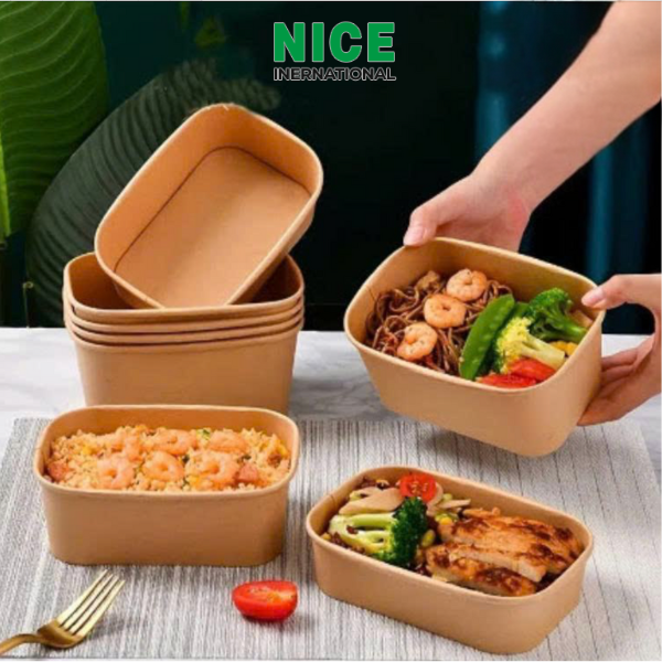 Hộp giấy kraft hình chữ nhật cao cấp NICE là lựa chọn lý tưởng cho các nhà hàng, quán ăn, dịch vụ take-away và catering nhờ thiết kế sang trọng, chất liệu an toàn và khả năng chống thấm vượt trội. Với cấu trúc hình chữ nhật tinh tế, hộp giúp bảo quản thực phẩm tốt hơn, giữ nguyên hương vị và đồng thời tăng giá trị thẩm mỹ cho sản phẩm.