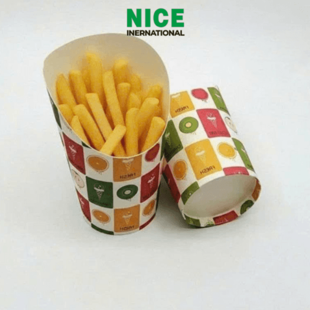 Khoai tây chiên là món ăn vặt quen thuộc, thu hút mọi lứa tuổi. Để tăng tính tiện lợi và nâng cao trải nghiệm thưởng thức, ly giấy đựng khoai tây chiên trở thành lựa chọn tối ưu cho các cửa hàng đồ ăn nhanh, quán take away, sự kiện và tiệc ngoài trời. Sản phẩm không chỉ đảm bảo vệ sinh an toàn thực phẩm mà còn đóng góp tích cực vào xu hướng tiêu dùng xanh hiện nay.
