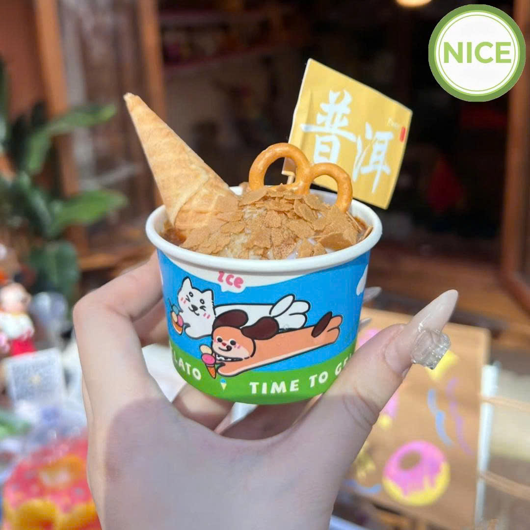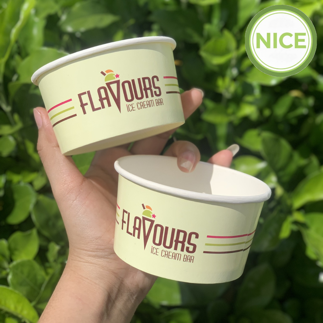 Thiết kế hiện đại, tinh tế: Kiểu dáng đẹp mắt, dễ in ấn logo, slogan và thông tin thương hiệu – giúp quảng bá hiệu quả cho quán kem hoặc thương hiệu F&B.