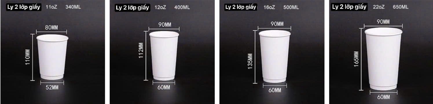 | Ly 2 lớp giấy | Quy Cách (oz) | Thể Tích (ml) | Đường Kính Trên (mm) | Đường Kính Dưới (mm) | Cao (mm) | Số Lượng/bao (pcs) | Số Lượng/ thùng (pcs) | Kích Thước Thùng Carton(cm) |