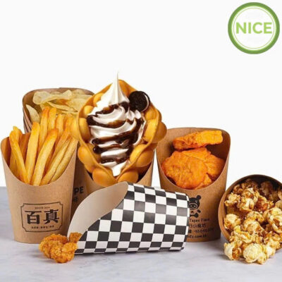 Trong ngành đồ ăn nhanh và F&B hiện đại, bao bì không chỉ là vật chứa mà còn là công cụ nâng cao trải nghiệm khách hàng và quảng bá thương hiệu. Ly khoai tây chiên NICE được thiết kế đặc biệt để đựng khoai tây chiên, gà rán, xúc xích, gà miếng chiên xù và các món ăn vặt nóng, giúp giữ độ giòn, an toàn và tiện lợi.
