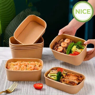 Chất liệu an toàn, thân thiện môi trường: Giấy kraft/giấy trắng cao cấp, phủ PE chống thấm, có thể phân hủy sinh học.